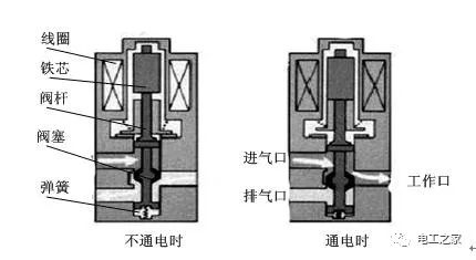 图1 二位三通电磁阀工作原理示意图